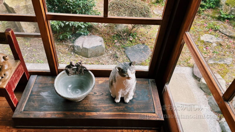 中庭に面した廊下で、日向ぼっこでもしているようで可愛い!